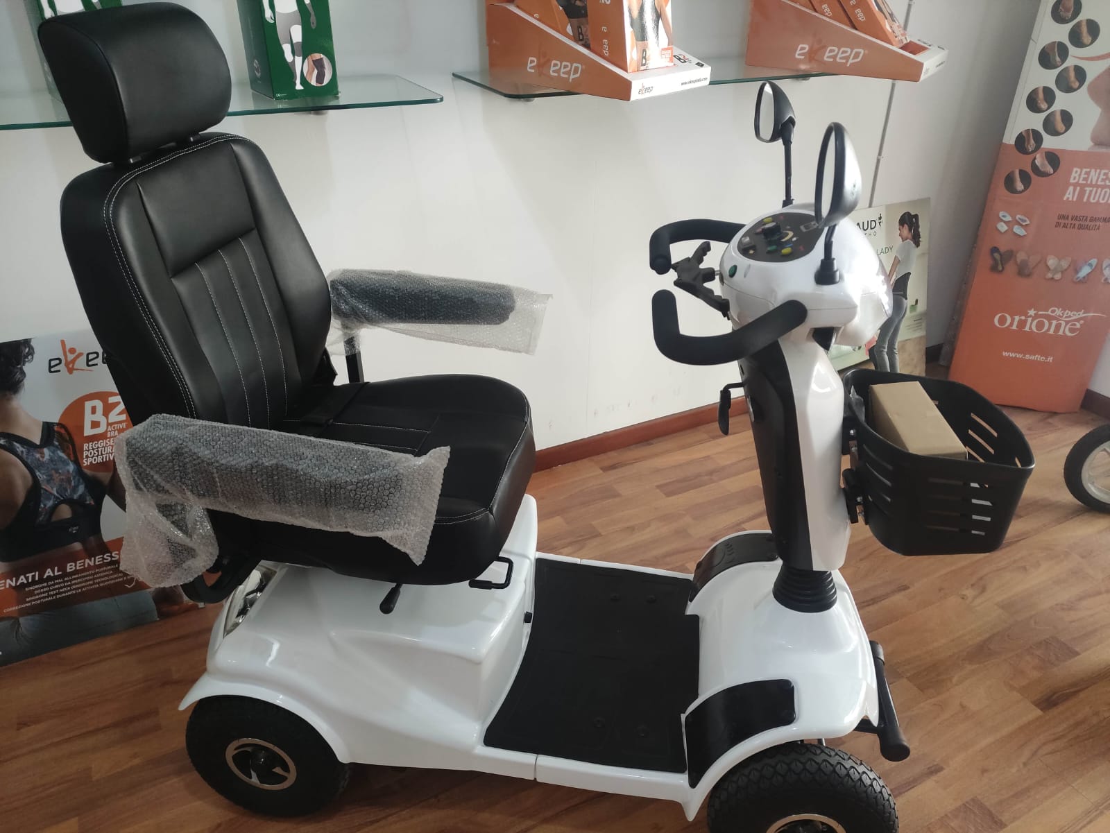 Lo scooter elettrico da esterno Cosmic ha un design e caratteristiche tecniche tali da raggiungere un elevato comfort di marcia su strada grazie anche ai 4 ammortizzatori regolabili e indipendenti su ogni ruota.